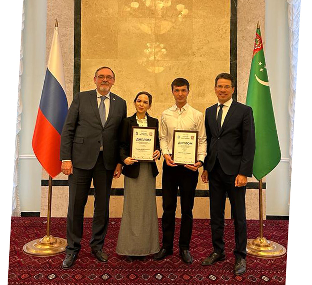 Посол Российской Федерации в Ашхабаде Иван Волынкин и министр внешних связей Астраханской области Владимир Головков вручили дипломы и памятные подарки призёрам конкурса «Каспий без границ» из Туркменистана. Ими стали два корреспондента газеты «Туркменистан». Об этом сообщила Посольство Российской Федерации в Туркменистане.