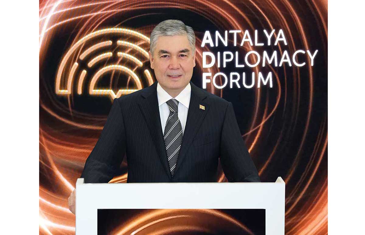 В рамках визита Герой-Аркадаг принял участие и в третьем Анталийском дипломатическом форуме. В своем выступлении председатель Халк Маслахаты заявил, что государства с переходной экономикой должны придать импульс устойчивой перестройке мироустройства, вводить в нее новые принципы и задачи.