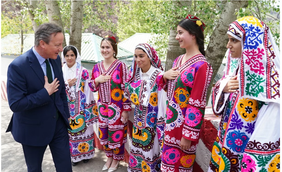 22-nji aprelde Dewid Kemeron Täjigistana sapar bilen bardy. Ol ýurduň Prezidenti Emomali Rahmon bilen duşuşdy. Daşary işler ministri Kemeron duşuşykda eden çykyşynda söwda, howanyň üýtgemegi we beýleki ugurlarda hyzmatdaşlyk etmegiň giň mümkinçilikleriniň bardygyny belledi. Täjigistanda saparda bolan ilkinji Beýik Britaniýanyň daşary işler ministri bolmakdan hoşaldygyny bellän Kemeron munuň üçin has köp wagt gerek bolandygy üçin hem gynanandygyny aýtdy.
