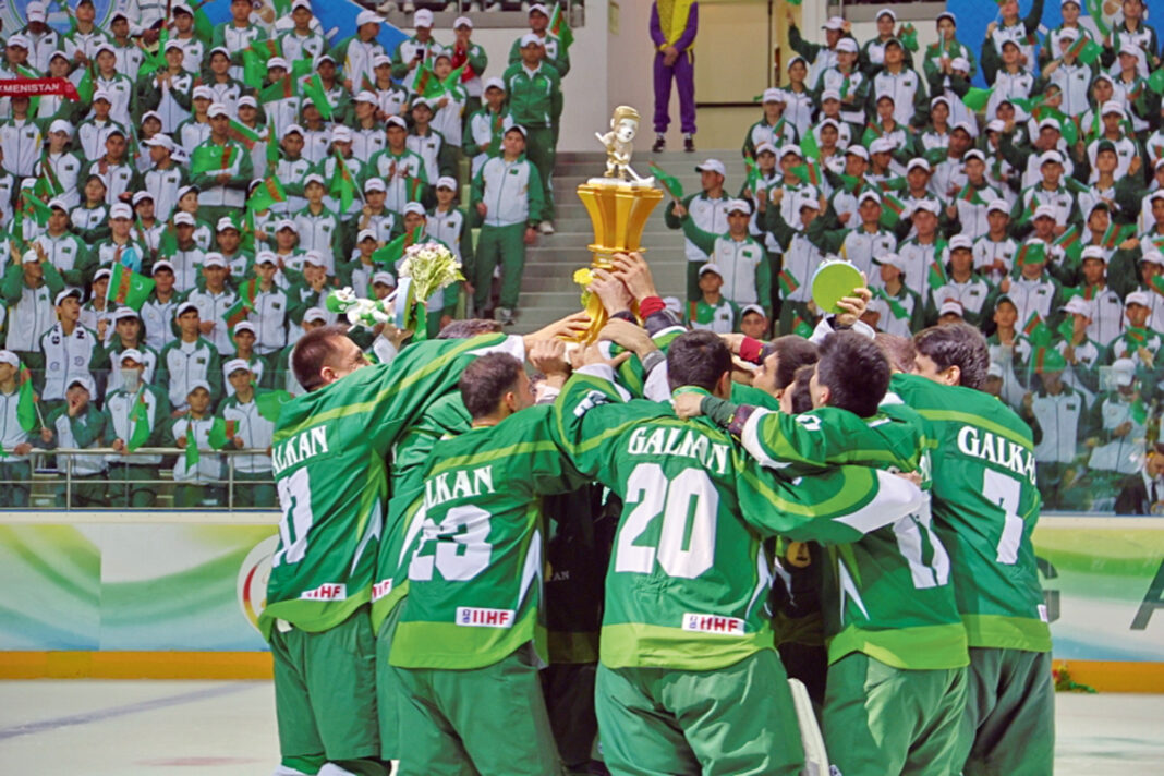 Güneşli Diýarymyz sportuň köp sanly görnüşleriniň giň gerimde ösdürilýän ýurduna öwrüldi. Ata Watanymyzda gyşky sport oýunlaryny ösdürmäge hem aýratyn ähmiýet berilýär. Şolaryň hatarynda buzuň üstünde oýnalýan şaýbaly hokkeýi hem agzamak bolar.