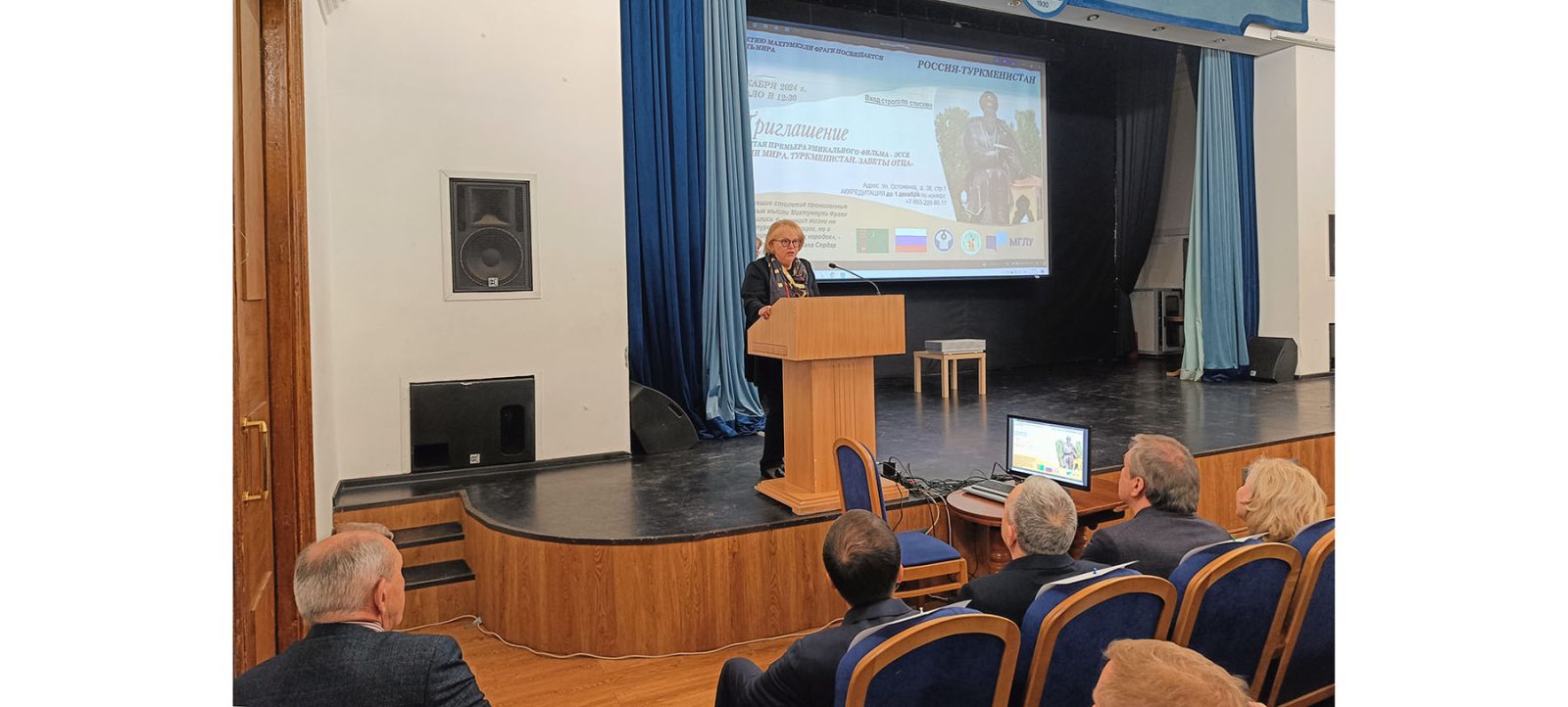 В Московском государственном лингвистическом университете имени Мориса Тореза 5 декабря состоялся показ просветительского фильма-эссе «Гении мира. Туркменистан. Заветы Отца» в честь 300-летия великого туркменского поэта и мыслителя Махтумкули. Об этом сообщает сайт russia.tmembassy.gov.tm.