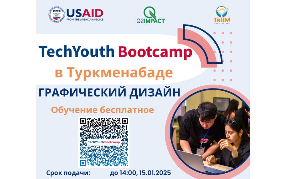 Проект USAID по развитию современных профессиональных навыков (YDA) совместно с учебным центром «Талим» объявляют о приеме заявок на участие во втором цикле программы «TechYouth Bootcamp» в Туркменабаде.