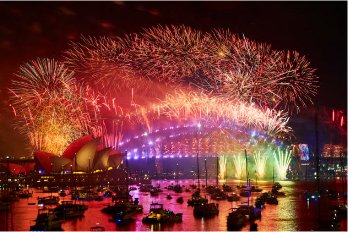 Ilkinji bolup, Kiribati Respublikasynyň Kiritimati, Teraina we onuň töweregindäki adalaryň ýaşaýjylary Täze ýyla aýak basýarlar. Şolaryň yzýany Täze ýyl Täze Zelandiýa, Awstraliýa we Ýuwaş ummanyndaky beýleki adalara aýak basýar. Bu ýerlerde Täze ýyl feýerwerkleriniň sesi ýaňlanyp başlan wagty biziň ýurdumyzda senenama 31-nji dekabry, sagadyň dili 15:00-y görkezýär.