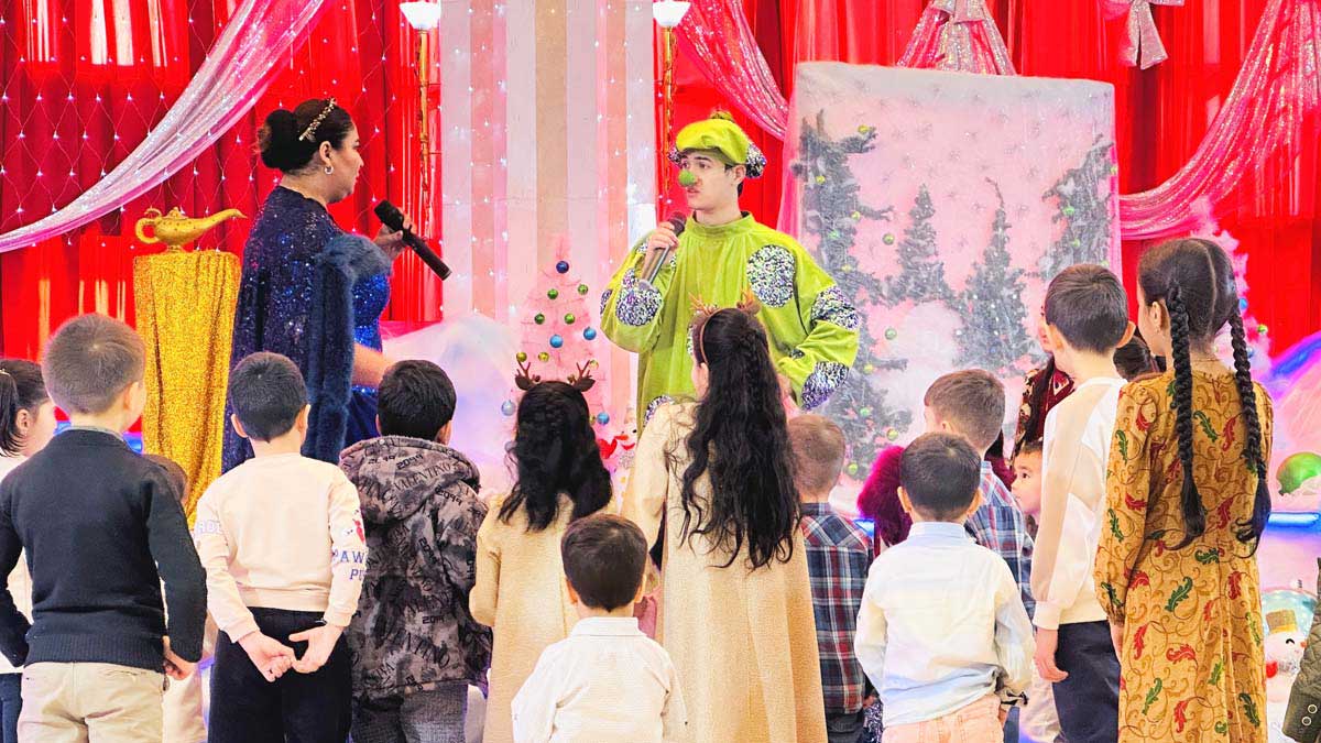 Перед театральной постановкой ребят ждёт новогодний карнавал и хоровод вокруг нарядной ёлки, который проходит с участием Бабы-яги, весёлым Шадыянджа, его помощницей и сказочных персонажей. Также ребят на празднике приветствуют восторженный Аяз баба и его внучка Гарпамык. Вместе они наполняют пространство атмосферой настоящего волшебства, зажигая огни на новогодней ёлке.