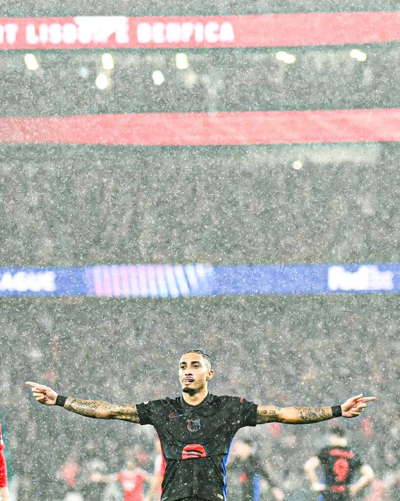Eýýäm oýnuň 2-nji minutynda “Benfikanyň” grek hüjümçisi Wangelis Pawlidis hasaby açdy. Bu gola katalonlar Lewandowskiniň penaltiden geçiren goly bilen jogap berse-de, Pawlidis ilkinji ýarym sagatda öz het-trigini tamamlady. Ol 22-nji minutda hem-de 30-njy minutda penaltiden tapawutlanyp, hasaby 3-1-e ýetirdi.