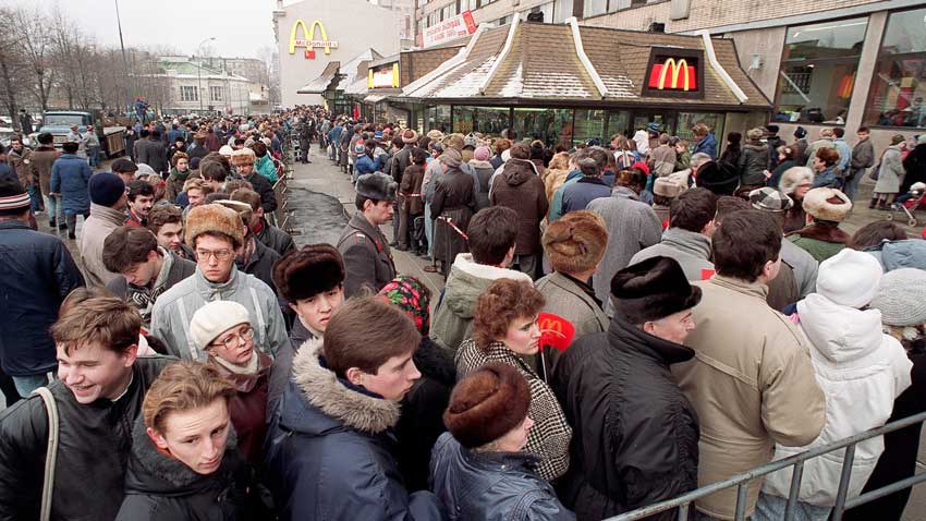1990-njy ýylyň 31-nji ýanwarynda Moskwada ilkinji «McDonald’s» tiz tagam restorany açylýar. Puşkinskaýa meýdançasynda ýerleşýän restoran ilkinji iş gününde 30 müňden gowrak müşderä hyzmat edip, «McDonald’s»-yň taryhynda dünýä rekordyny goýýar.