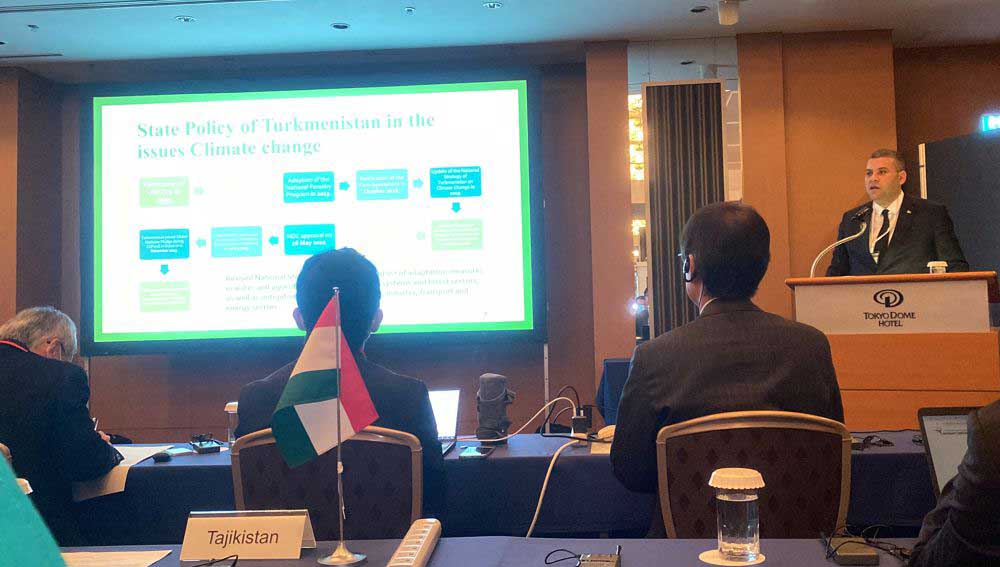 Заместитель начальника Управления координации международного экологического сотрудничества и проектов Министерства охраны окружающей среды Туркменистана Мерген Юсупов выступил с докладом о ключевых направлениях государственной экологической политики Туркменистана, а также о мероприятиях, реализуемых в соответствии с Национальной стратегией Туркменистана по изменению климата. В своем выступлении он отметил меры, предпринимаемые страной в области изменения климата, и международные инициативы, выдвигаемые уважаемым Президентом Туркменистана.
