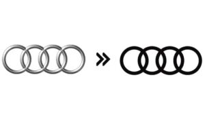 Meşhur nemes brendi «Audi» öňküsinden känbir üýtgemedik täze logosyny ulaglaryna ornaşdyrdy. Bu kompaniýa 1969-njy ýylda tassyklanan logosyny 2005-nji ýylda kümüşden ýasalan 3 ölçegli halkalar bilen çalyşdy. 2022-nji ýylda bolsa, logosyny has-da ýönekeýleşdirip, 2 ölçege geçirdi.