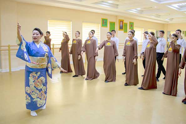 В средне-специальных и высших учебных заведениях туркменской столицы состоялась серия мастер-классов мастера национального японского танца г-жа Уэда Чихо и музыканта г-н Кикучи Ютака. Об этом сообщает электронная газета «Туркменистан: Золотой век».