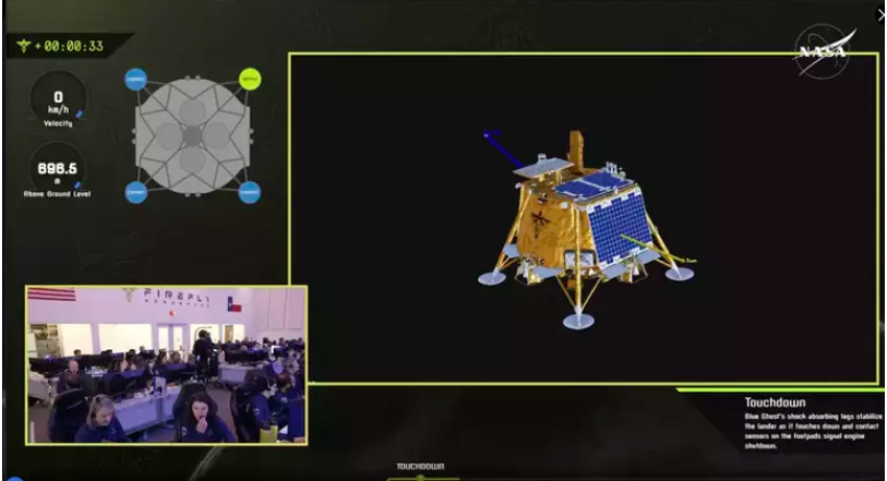 ABŞ-nyň “Firefly Aerospace” kompaniýasynyň işläp taýýarlan “Blue Ghost” kosmos gämisi Aýa gondy. Kompaniýanyň Tehasdaky Missiýa Gözegçilik merkezi kosmos enjamynyň Aýa awtomat ýagdaýda gonandygyny mälim etdi. “Blue Ghost” ABŞ-nyň aerokosmos edarasynyň (NASA) Aýa adamly uçuşlary amala aşyrmagy üçin gerek bolan infrastrukturany döretmegine ýardam eder. Kosmos gämisi tozan bölejiklerini ýygnamak, temperatura ölçemek ýaly işleri ýerine ýetirýän jemi 10 sany abzal bilen üpjün edilipdir.