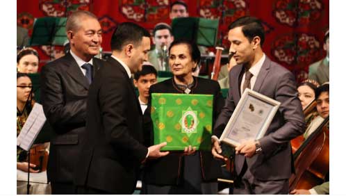 Третьего места удостоились преподаватель Марыйской специальной музыкальной школы имени Ёламана Хуммаева Довлетгелди Ханов и студент ТНК им. Майи Кулиевой Аман Акмырадов.