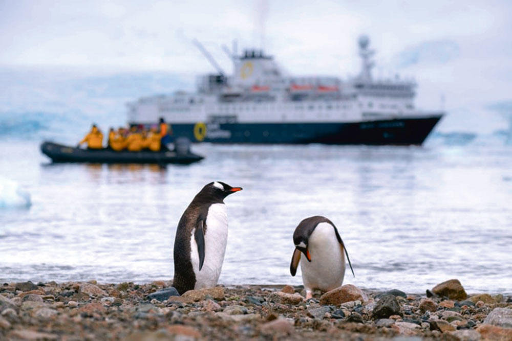Soňky ýyllarda Antarktika syýahat edýänleriň sany barha artýar. Has rahat we kuwwatly gämileriň gurulmagy buzly we garly yklyma amala aşyrylýan syýahaty ýeňilleşdirýär. Ispaniýanyň «El País» neşiri bu yklymyň syýahatçylyk mümkinçilikleri we onuň tebigata täsiri barada habar taýýarlapdyr. Habarda pingwinleriň ýaşaýan ýerleriniň syýahatçylaryň has köp ünsüni çekýändigi bellenilýär. Syýahatçylar kaşaň gämiler arkaly ol ýere barýarlar. Syýahatçylar bu täsin syýahatda pingwin şekilli eşikleri geýýärler, ol ýerde deňze girip suwa düşüp görýärler hem-de Antarktikanyň buzundan içimligine goşup içip görýärler. Howanyň maýlamagy, adamlaryň has köp barmagy netijesinde sebitde gök meýdanlaryň çäginiň giňeýändigi bellenilýär.