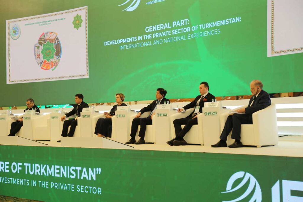 IFT 2025 halkara forumy Türkmenistanyň hususy pudagynyň ösüşleri: ýetilen sepgitler we mümkinçilikler, Kiçi we orta telekeçilige ýardam bermek: halkara we milli tejribeler, Üznüksiz aýlawly (sirkulýar) ykdysadyýet: Türkmenistanyň senagat, gurluşyk, ulag we syýahatçylyk pudaklarynyň häzirki zaman ösüşinde hususy pudagyň orny, Oba hojalygyna innowasiýalary ornaşdyrmakda hususy pudagyň gazananlary we maksatnamalaýyn ugurlary ýaly bölümleri öz içine alýar. Bu bölümleriň çäklerinde geçirilen plenar mejlislerde ýerli bilermenler bilen bir hatarda BMG-niň Ösüş maksatnamasynyň Türkmenistandaky hemişelik wekili Narine Saakýan, Türki söwda we senagat edarasynyň wekili Adem Kula, Ýewropada Howpsuzlyk we Hyzmatdaşlyk Guramasynyň (ÝHHG) Aşgabatdaky merkeziniň ýolbaşçysy Jon MakGregor, Gazagystan Respublikasynyň «Samruk-Kazyna» milli abadançylyk gaznasynyň jemgyýetçilik geňeşiniň agzasy, Türkmen-gazak işewürler geňeşiniň gazak tarapyndan ýolbaşçysy Aýdar Kazybaýew, Belarus Respublikasynyň «SoftClub» kompaniýasynyň ylym we innowasiýa boýunça Baş direktorynyň orunbasary Wladimir Anişşenko, Aziýa Ösüş Bankynyň Türkmenistandaky hemişelik wekilhanasynyň direktory Artur Andrisýak, Germaniýa Federatiw Respublikasynyň «MTS Mangal Transport & Shipping GmbH» kompaniýasynyň direktory Mangal Azgarkhil, Niderlandlar Patyşalygynyň «M&P Holding» kompaniýasynyň direktory Anatoliý Nikulin we Amerikanyň Birleşen Ştatlarynyň «John Deere Walldorf International GmbH» kompaniýasynyň Garaşsyz Döwletleriň Arkalaşygynyň ýurtlary boýunça wise-prezidenti Piter Zakse hem-de Hytaý Halk Respublikasynyň «China Railway Construction Heavy Industry Corporation Limited» kompaniýasynyň direktorynyň orunbasary Tang Žiwei ýaly bilermenler çykyş etdiler. Çykyşlarda ykdysady hyzmatdaşlygy pugtalandyrmakda maý goýumlaryna möhüm ornuň degişlidigi bellenildi.