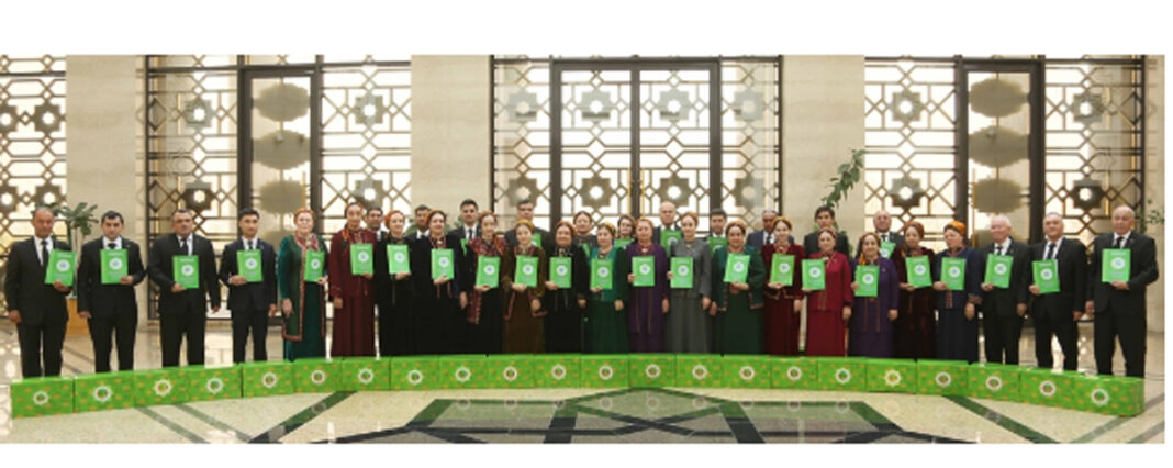 За особый вклад в успешно реализуемые в стране реформы образования, созидательный труд, особые навыки и умения в организации воспитательной работы на основе современных методов педагогической науки были торжественно награждены специалисты из Ашхабада, города Аркадага, Ахалского, Балканского, Марыйского, Лебапского, Дашогузского велаятов, Дворца «Döwletliler köşgi» и образовательного центра «Gujurly».