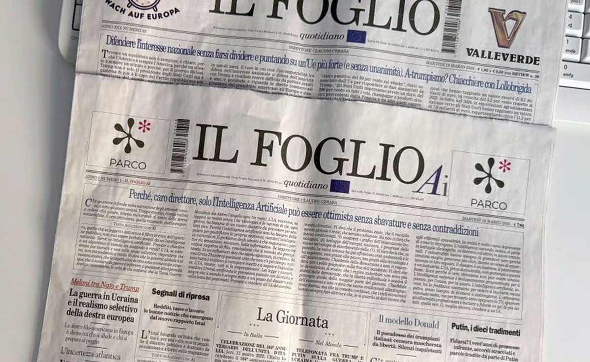 Italiýanyň «Il Foglio» gazetiniň redaksiýasy emeli aň tarapyndan döredilen gazetiň ilkinji sanyny çykardy. Gazetiň tekstlerden başlap, sözbaşylara çenli ählisi täze tehnologiýa bilen ýerine ýetirildi. Dört sahypalyk gazet satuwa hem çykdy.