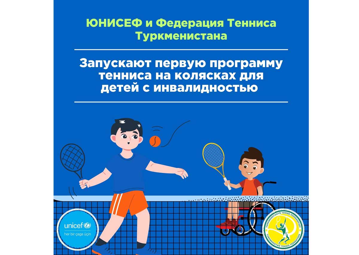 UNICEF and the Turkmenistan Tennis Federation (TTF) have launched the country’s first wheelchair tennis program, providing ten children aged 7-18 with physical disabilities access to sports, confidence-building, and social inclusion. The program includes specialized wheelchairs, coaching, and tailored training.