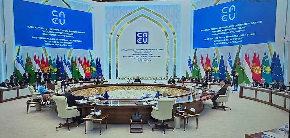 Özbegistanyň Samarkant şäherinde «Merkezi Aziýa — Ýewropa Bileleşigi» görnüşindäki birinji sammiti we klimat forumy geçirilýär. Şu gün bu gadymy şäherde ýerleşýän Kongres merkezinde Merkezi Aziýa döwletleriniň Baştutanlarynyň we Ýewropa Bileleşiginiň ýolbaşçylarynyň ilkinji taryhy duşuşygy geçirildi. Oňa hormatly Prezidentimiz Serdar Berdimuhamedow hem gatnaşyp, sammitiň gün tertibinde ileri tutulýan ugurlar boýunça Türkmenistanyň garaýyşlaryny mälim etdi.