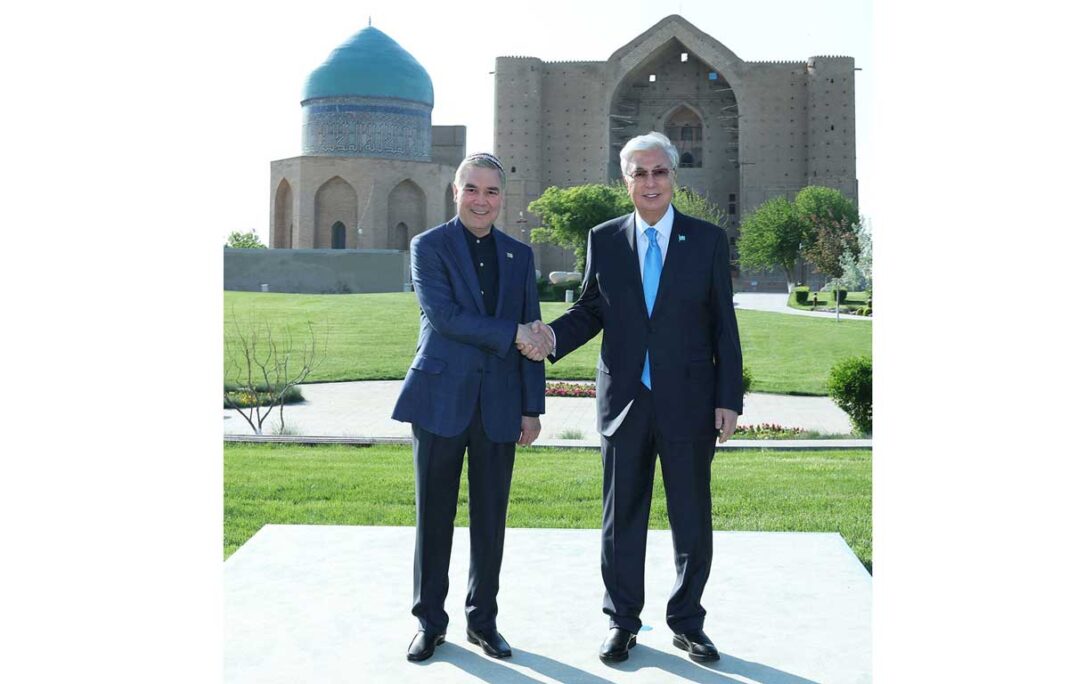 Türkmenistanyň Halk Maslahatynyň Başlygynyň we Gazagystan Respublikasynyň Prezidentiniň bilelikdäki awtoulag kerweni Hazret Sultan milli muzeý-goraghanasyna gelýär. Bu ýerde Gahryman Arkadagymyz hem-de dostlukly ýurduň Baştutany mähirli garşylanyldy we Türküstan şäheriniň taryhy barada gürrüň berildi.
