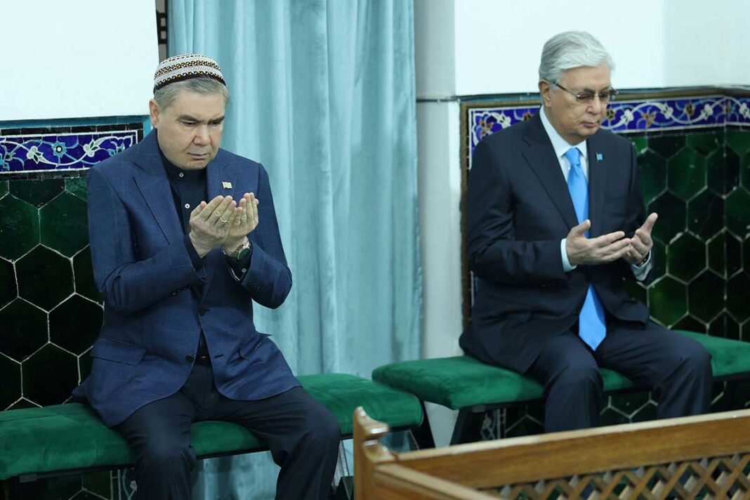 В ходе визита Гурбангулы Бердымухамедов и Касым-Жомарт Токаев посетили мавзолей Ходжа Ахмета Ясави, где муфтии двух стран прочитали аяты из священного Корана и молитвы.