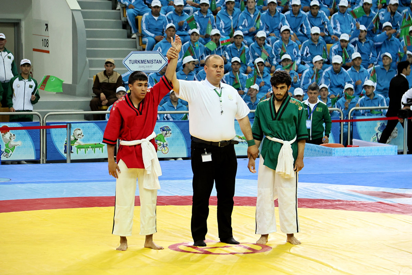 Dabaranyň resmi açylyşy tamamlanandan soňra, joşgunly aýdym-sazly we tansly çykyşlar ýaýbaňlandyryldy. Soňra ýaryşyň maksatnamasynyň birinji görnüşi — türkmen milli göreşi boýunça 8 medal toplumy ugrunda bäsleşiklere orun berildi. 8 agram derejesiniň ählisinde türkmen türgenleri ýeňiji boldular. Aşyrmyrat Amandurdyýew (57 kg çenli), Ýakup Babaýew (62 kg çenli), Yhlas Begmyradow (68 kg çenli), Agaýusup Garaýew (75 kg çenli), Sylapberdi Nuryýew (82 kg çenli), Annagurban Allaberdiýew (90 kg çenli), Pälwan Gurbangeldiýew (100 kg çenli), Nurmuhammet Baýdogdyýew (100 kg-dan ýokary) altyn medala mynasyp boldular. Şeýle hem Türkmenistanyň ýygyndy toparyndan Muhammetarslan Geldiýew (57 kg çenli), Atageldi Tejendurdyýew (75 kg çenli), Döwran Jumadurdyýew (82 kg çenli), Begli Hojammaýew (100 kg çenli), Öwezgeldi Berdiýew (100 kg çenli) kümüş medal, Pälwan Akmyradow bolsa (68 kg çenli) bürünç medal gazandylar.
