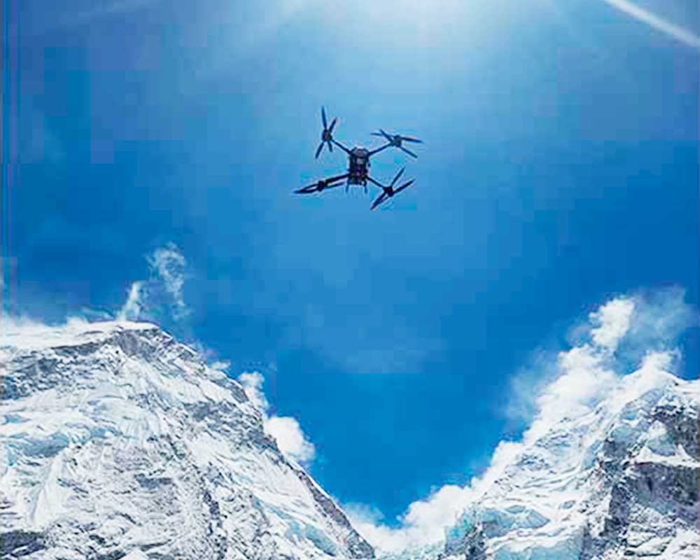 Dünýäniň iň beýik nokady bolan Ewerest dagyna çykmak iň kyn işleriň biri hasaplanýar. Bu ýerdäki dik gaýalar, sowuk howa, buz örtügi we güýçli ýel ýokary dyrmaşmagy kynlaşdyrýar. Deňiz derejesinden ýokary çykylmagy bilen dem almak hem kynlaşýar. Emma ösen tehnologiýa daga çykmagy aňsatlaşdyrar. Indi merduwan, ýüp, kislorod ballony ýaly ýokary dyrmaşmak üçin gerek bolan serişdeler dronlar arkaly daşalar. Daga dyrmaşmakda şol ýere belet ýerli halkyň wekilleri bolan şerpalar kömek edýär. «Airlift Technology» atly kompaniýa bolsa şerpalaryň onlarça ýyllyk tejribesinden peýdalanyp, dronly hyzmaty ýola goýmagyň aladasyny edýär. Şeýlelikde, daga çykmak ýeňil hem-de has howpsuz bolar.