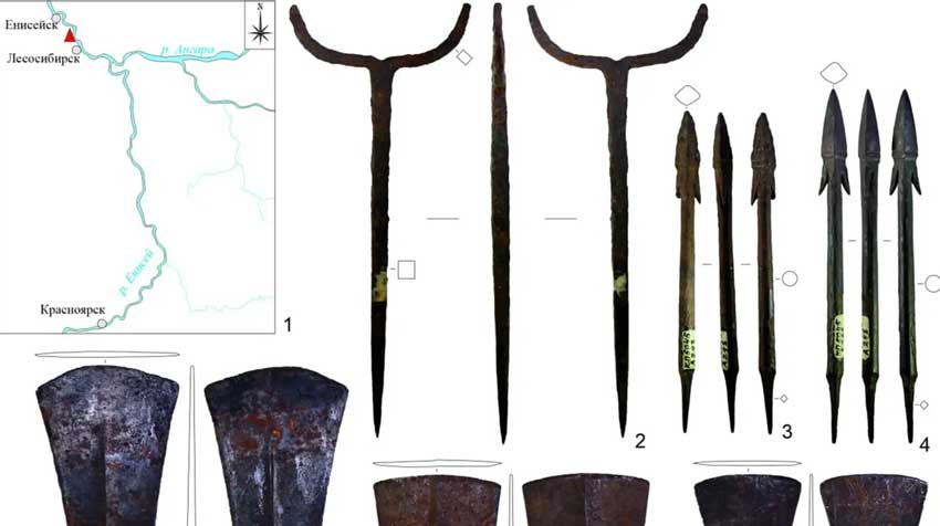В число находок вошли широкие плоские наконечники (срезни) и длинные бронебойные стрелы с шипами. Последний вид оружия часто использовался таежным населением региона.