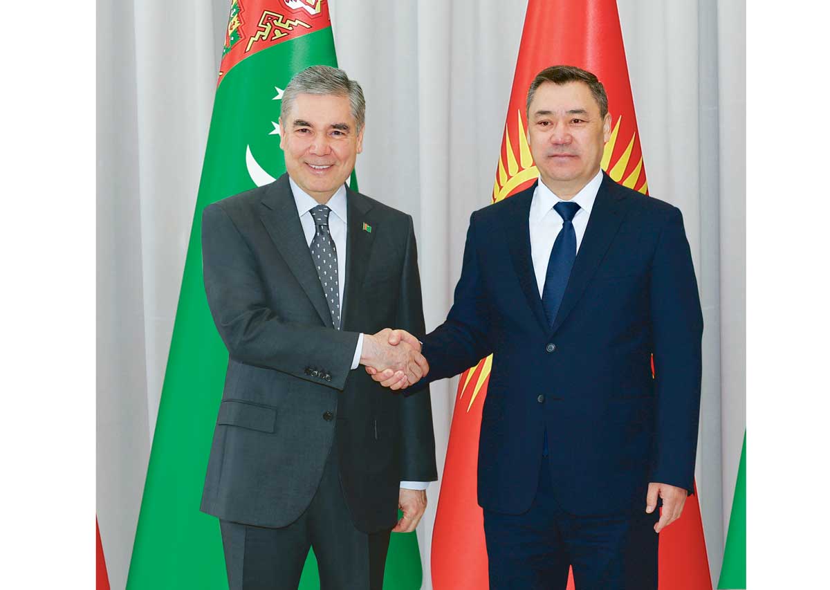 Gahryman Arkadagymyz dostlukly ýurda sapar bilen gelmäge çakylygy hem-de myhmansöýerlik üçin minnetdarlyk bildirip, şu gezekki duşuşyga ýurtlarymyzyň arasyndaky okgunly ösýän syýasy dialogyň dowamy hökmünde garaýandygyny belledi. Milli Liderimiz Türkmenistan bilen Gyrgyz Respublikasynyň arasynda dostlukly gatnaşyklary we hyzmatdaşlygy ösdürmäge saldamly goşandy üçin Prezident Sadyr Žaparowa minnetdarlyk bildirdi hem-de pursatdan peýdalanyp, oňa hormatly Prezidentimiziň mähirli salamyny we iň gowy arzuwlaryny ýetirdi.