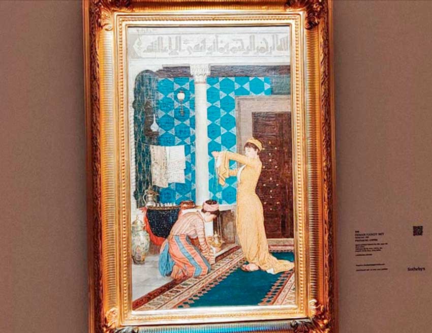 «Sotheby’s» auksion öýi Londonda gymmat bahaly we seýrek nusgalary duş gelýän sungat eserlerini «Gündogar sungaty» ady bilen satuwa hödürledi. Jemi 50 eseriň satuwa çykarylan auksionynda türk suratkeşi Osman Hamdi Beýiň 1881-nji ýylda çeken suraty iň gymmat bahadan satylan lot boldy. Awstriýadaky hususy kolleksiýada saklanýan eser 1 million funt sterlinge satyldy. Eseri 1910-njy ýylda gruziýaly Şazada Sadyk Ýadigarow satyn alypdyr. Soňra eser onuň ogly Arçile galypdyr. 1930-njy ýyllarda Arçil öýlenensoň, şonuň bilen garyndaş bolan Wenadaky hususy kolleksiýaçylaryň birine geçipdir.