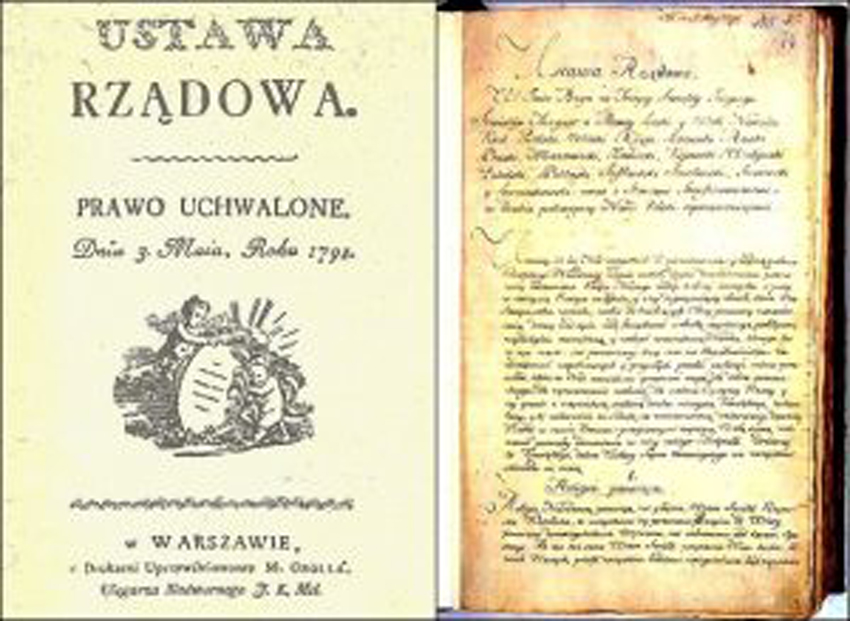 1791-nji ýylyň 3-nji maýynda Ýewropanyň ilkinji döwrebap Konstitusiýasy Polýak-Litwa Arkalaşygynyň Beýik Seými tarapyndan kabul edilýär. Hökümet Kanuny atly resminama 1788-1792-nji ýyllar aralygynda çagyrylan Beýik Seým (mejlis) tarapyndan kabul edilip, syýasy häkimiýetiň kanun çykaryjy, ýerine ýetiriji we kazyýet häkimiýetlerine bölünmegini şertlendirýär. Şeýlelikde dünýäde ABŞ-dan soňra syýasy häkimiýeti üçe bölýän ikinji konstitusiýa güýje girýär.
