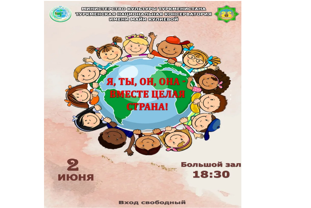 В Большом зале Туркменской национальной консерватории им.М.Кулиевой 2 июня состоится яркий концерт «Я, ты, он, она – вместе целая страна!», приуроченный к Международному дню защиты детей.
