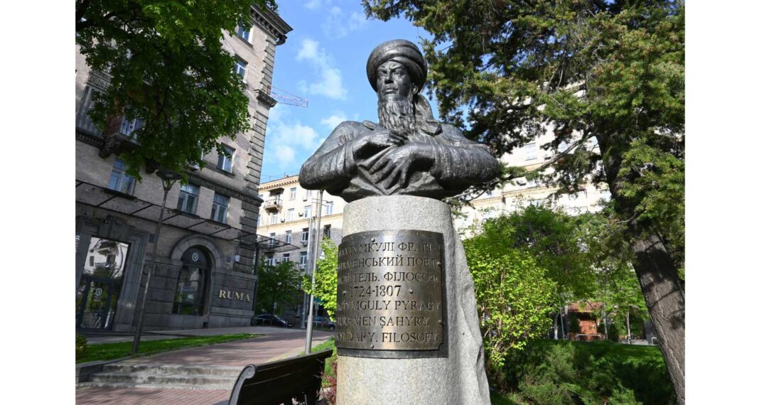 Ukrainanyň paýtagty Kiýew şäherinde, Türkmenistanyň Ilçihanasynyň golaýynda ajaýyp seýilgäh ýerleşip, onuň çäginde Gündogaryň beýik akyldary, görnükli türkmen şahyry Magtymguly Pyragynyň ýadygärligi oturdylandyr.