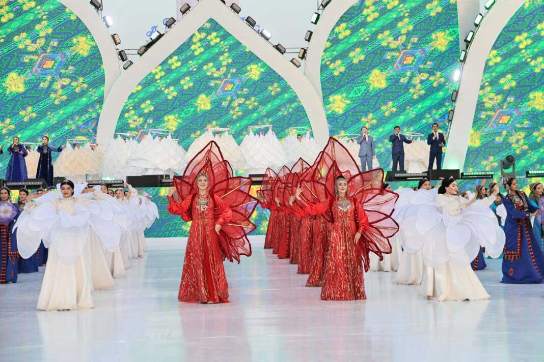 Великолепной увертюрой концерта стала композиция «Ýaşa, mähriban Arkadag!» с участием фольклорного ансамбля «Dokmaçylar».