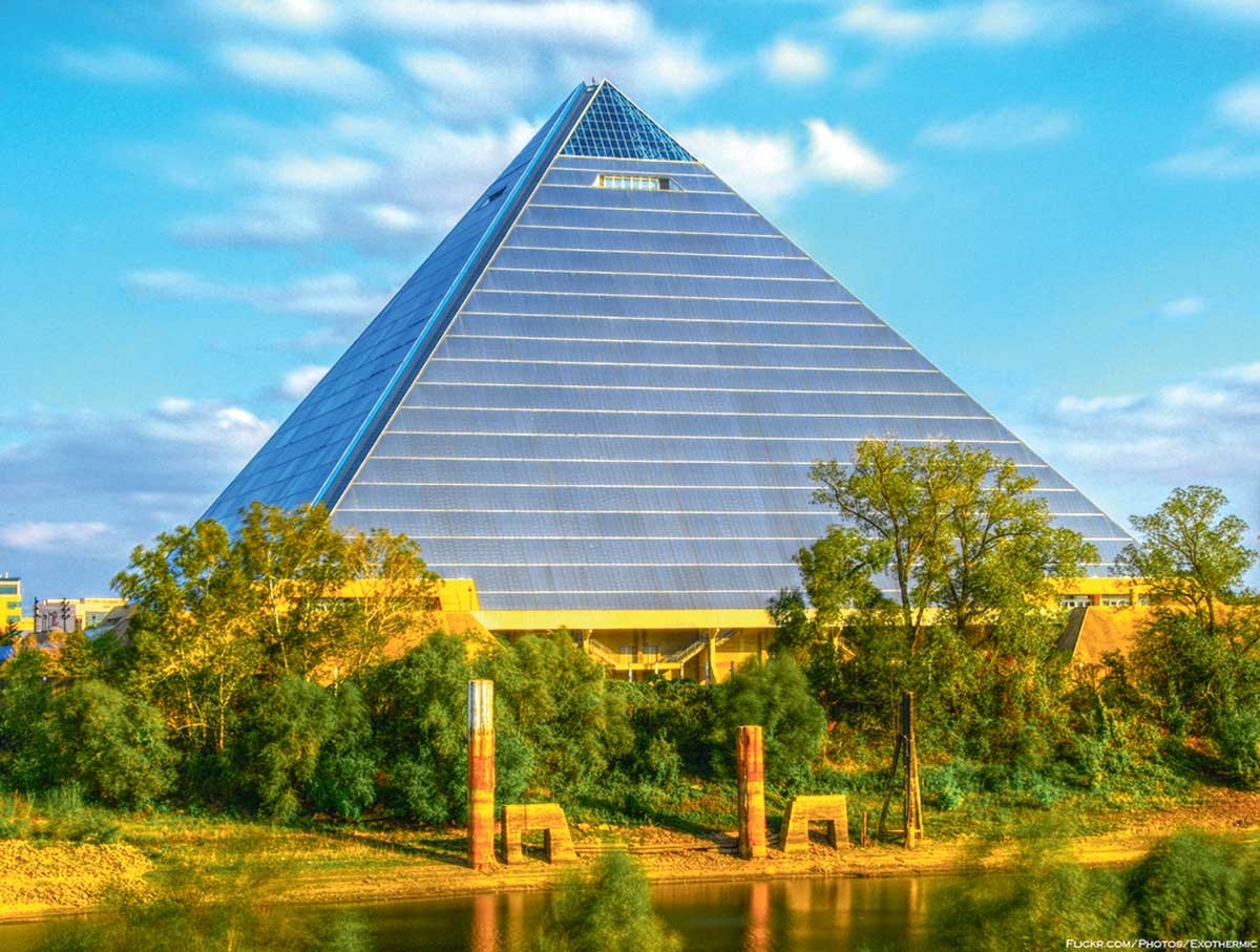 «Piramida Arena», ABŞ. ABŞ-nyň Tennessi ştatynda ýerleşýän «Piramida Arena» dünýäde altynjy uly piramida hökmünde tanalýar. 100 metr beýiklikdäki bu piramida Müsüriň Giza piramidasyndan birneme gysga bolup, Memfis uniwersitetiniň bagynda ýerleşýär. «Piramida Arena» sport çärelerini geçirmek üçin ýörite döredilýär. Missisipi derýasynyň kenarynda gurlan bu sport toplumyna 20 müň tomaşaçy sygýar.
