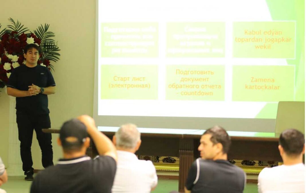 The classes are being held in the conference hall of the multifunctional stadium “Ashgabat.” Participants are thoroughly studying the duties of a commissioner during a game. Representatives of the country’s football clubs are also taking part in the training, which is organized by specialists from the Football Federation of Turkmenistan.