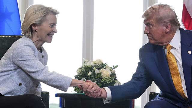 Ýewropa Komissiýasynyň başlygy Ursula fon der Laýen bolsa, 15 göterimlik nyrhnamanyň ähli harytlara degişlidigini tassyklap, bu ýagdaýyň iki iri söwda hyzmatdaşynyň arasynda söwda deňagramlylygyny gaýtadan üpjün etmäge goşant goşjakdygyny belledi.