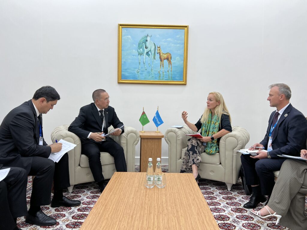 Находясь в Авазе, ван дер Хейден встретилась с высокопоставленными представителями правительства, включая Байрамгуль Ораздурдыеву, заместителя Председателя Кабинета Министров Туркменистана по науке, образованию, здравоохранению и спорту, и Ходжамырата Гельдимырадова, заместителя Председателя Кабинета Министров Туркменистана по экономике и финансам. Обсуждения были посвящены новой программе сотрудничества между ЮНИСЕФ и Правительством Туркменистана на 2026–2030 годы, а также расширению взаимодействия в таких областях, как охрана здоровья детей, инклюзия детей с инвалидностью, раннее образование, климатически устойчивые школы и устойчивое государственное финансирование в интересах детей.