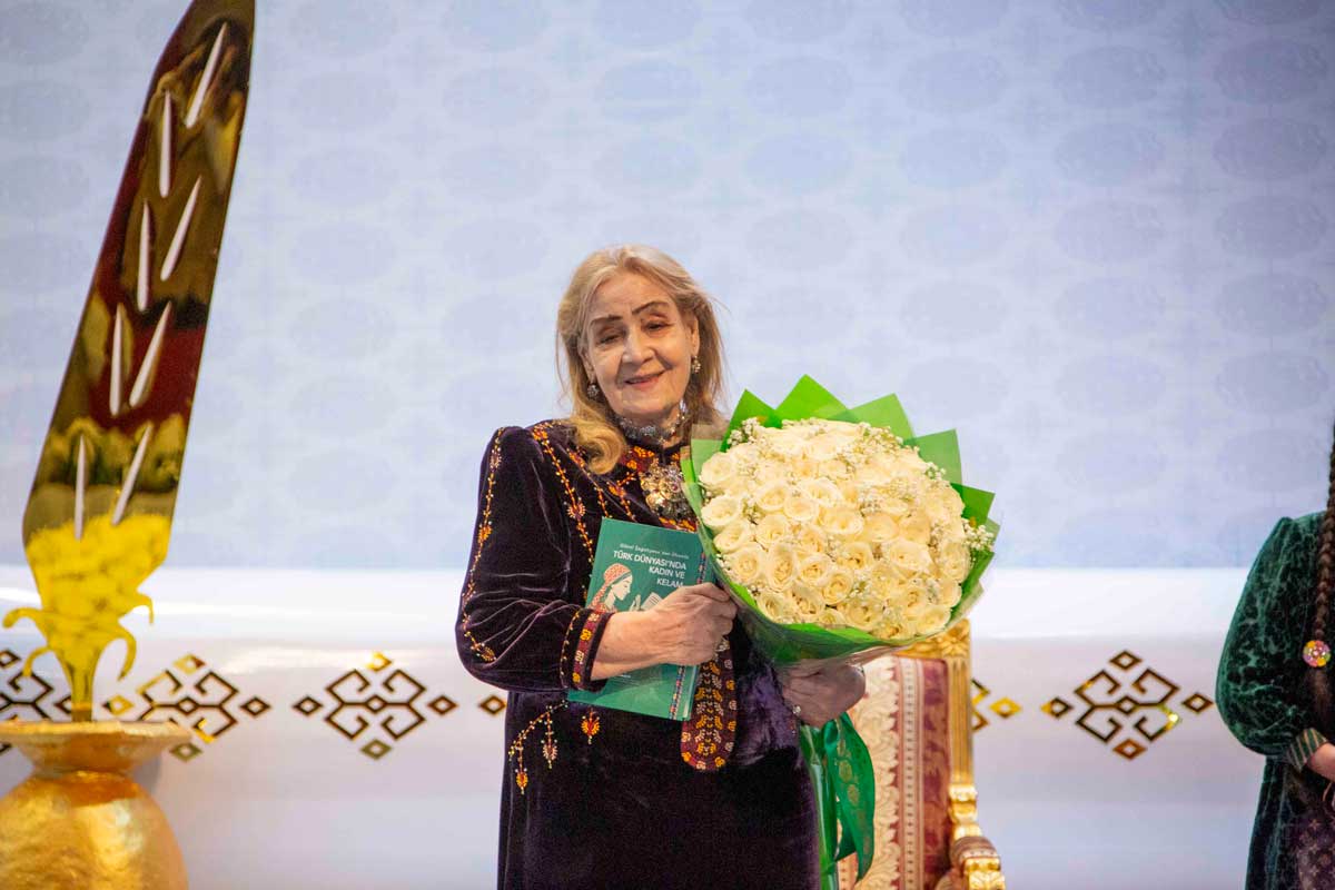 Döwlet Baştutanymyzyň Gutlagyny hem dabara gatnaşyjylar dowamly el çarpyşmalar bilen kabul etdiler. Şol pursatda ussat şahyra hormatly Prezidentimiziň iberen ajaýyp ter çemeni gowşuryldy.