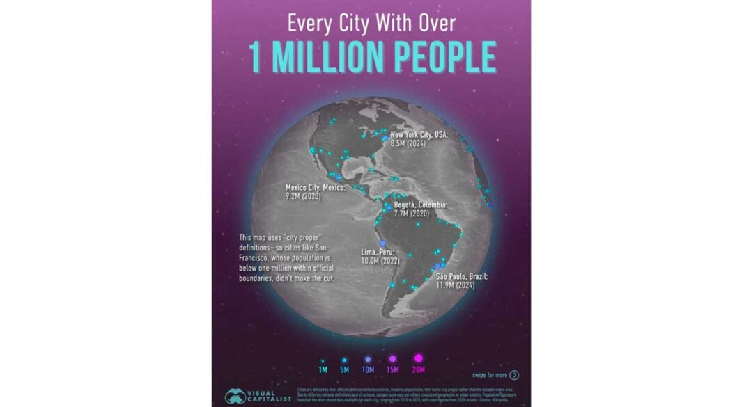 Dünýä gitdigiçe şäherleşýär, şäherlerde öňkülerinden has köp ilat ýaşaýar. Täze statistikada 1 milliondan köp ilaty bolan dünýäniň ähli şäherleri ýurtlara görä kategoriýalara bölünýär. Maglumatda uly şäherlere däl-de, gür ilatly şäherlere orun berlipdir.