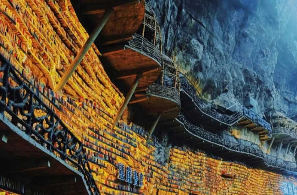 Hytaýyň Heçi etrabynda (Guansi-Çžuan awtonom sebiti) 300 metrlik uçudyň kertinde gurlan özboluşly kitap dükany köpleriň göwnünden turdy. Adaty bolmadyk binagärlik çözgüdi eýýäm syýahatçylaryň ünsüni özüne çekdi.
