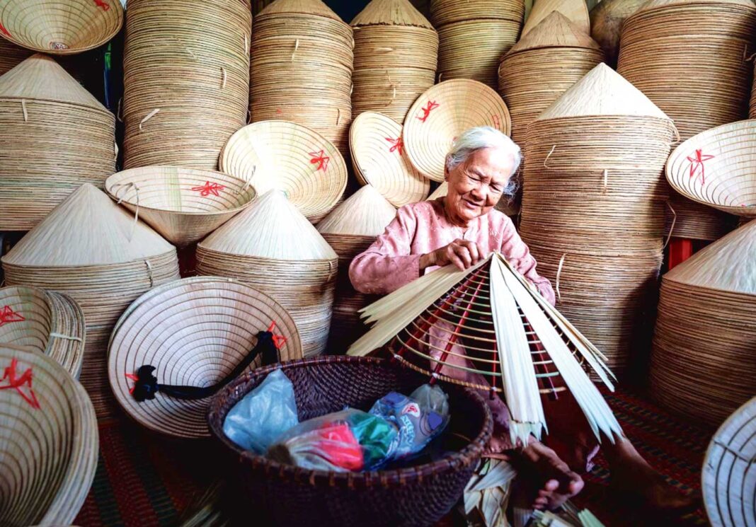 «Non la» wýetnam medeniýetiniň möhüm nyşanlarynyň biri hasaplanýar. Köpçüligiň arasynda «bambuk şlýapa» diýilýän tegelek şlýapa öz gözbaşyny XIII asyrdan alyp gaýdýar. Tran dinastiýasy döwründe oýlanyp tapylan bu şlýapa taryh we däp-dessurlar bilen baglanyşyklydyr. Başgabyň bu görnüşi palma ýapragyndan we bambugyň çybygyndan ýasalýar. Ilki bambuk agajynyň çybygyndan şlýapanyň gabarasy ýasalýar. Soňra 24-35 sany palma agajynyň ýapraklary gezekli-gezegine geçirilip dokalýar. Taýýar bolan şlýapa senetçiler tarapyndan dürli şekiller we nagyşlar bilen bezelýär. «Non la» Wýetnamda sungat eseri hökmünde görülýär. Çünki şlýapada gizlin suratlar we ýazgylar ýerleşdirilip, ony diňe Güne tutanyňda görüp bolýar. Ujy çüri, tegelek gurşawly bu şlýapa ýagyş geçirmeýändigi bilen tapawutlanýar. Ekerançylardan başlap islendik adam «non la» geýip musson ýagyş möwsümini geçirip bilýär. Adatça «non la» şlýapasyny 4-8 sagat aralygynda dokap bolýar.