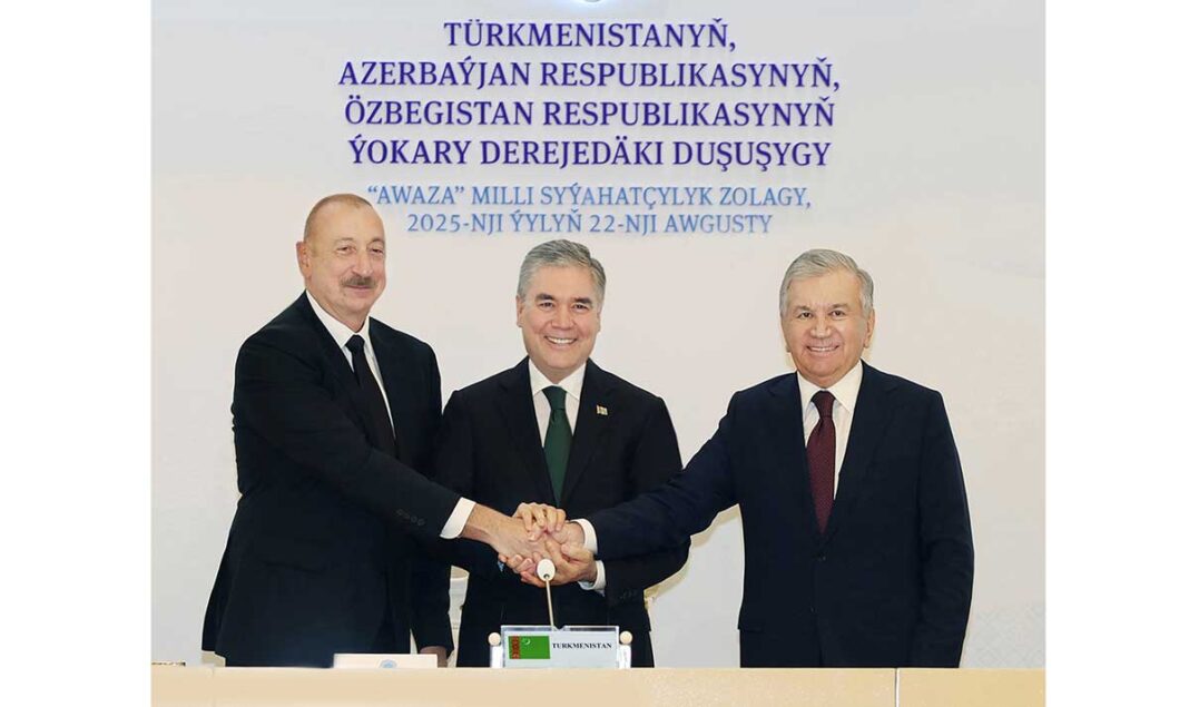 Türkmenistanyň «Awaza» milli syýahatçylyk zolagynda 2025-nji ýylyň 22-nji awgustynda, mundan beýläk «taraplar» diýlip atlandyrylýan türkmen halkynyň Milli Lideri, Türkmenistanyň Halk Maslahatynyň Başlygy Gurbanguly Berdimuhamedowyň, Azerbaýjan Respublikasynyň Prezidenti Ilham Aliýewiň we Özbegistan Respublikasynyň Prezidenti Şawkat Mirziýoýewiň duşuşygy geçirildi.