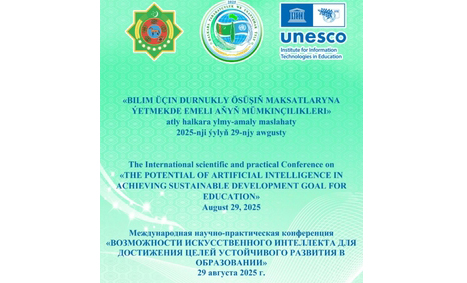 The conference is organized by the Ministry of Education of Turkmenistan jointly with the UNESCO Institute for Information Technologies in Education (UNESCO IITE). The main goal of the event is to discuss the integration of artificial intelligence into educational platforms at the national and international levels, as well as the exchange of best practices in this area.