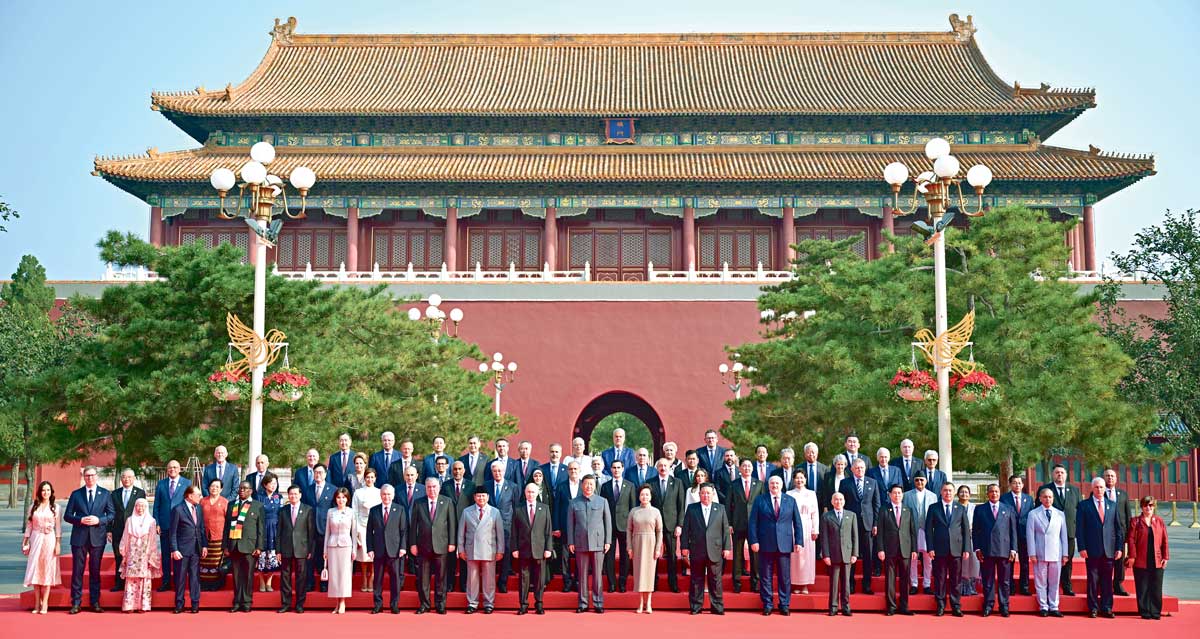 После совместного фотографирования глав делегаций на площади Тяньаньмэнь состоялся торжественный военный парад. Торжественный парад стал символом приверженности Китая миру и памяти о национальных героях.