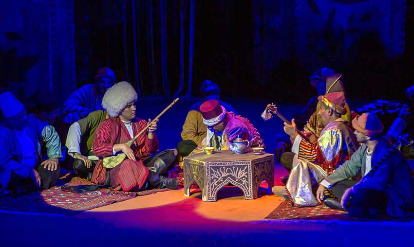 People’s Artist of Turkmenistan Kakajan Ashirov staged the play in 2019. The main role is played by Serdar Artykov, who plays the guitar, dutar, keyboards and is fond of pop vocals.