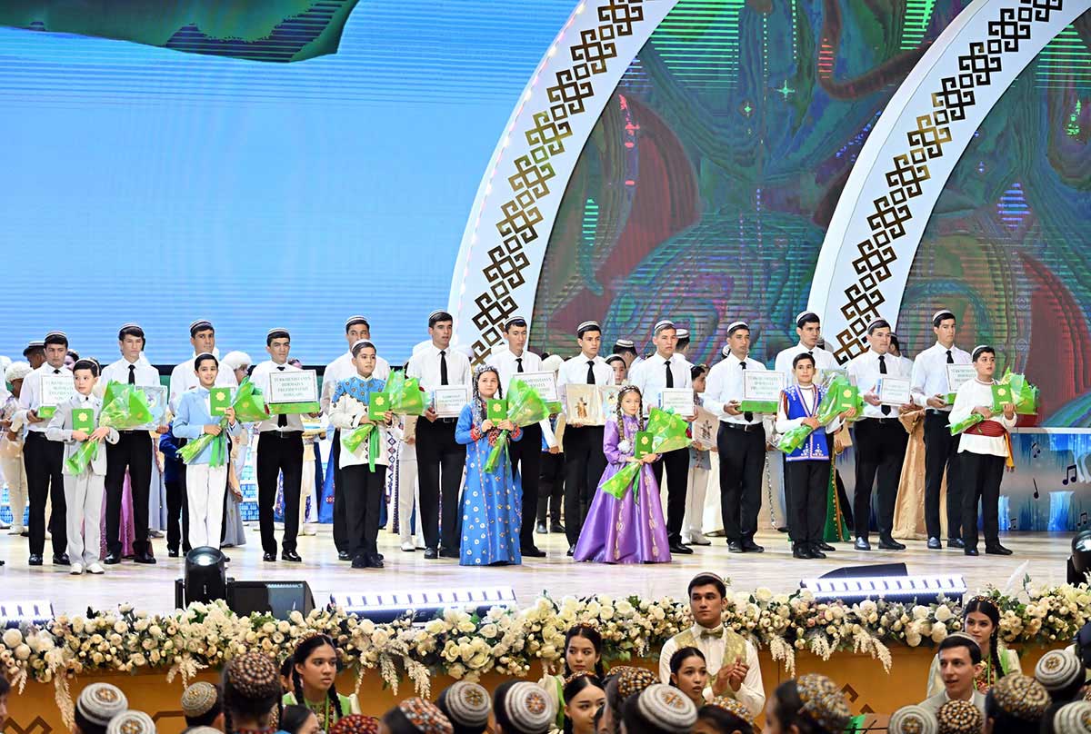 Şeýle hem “Garaşsyzlygyň merjen däneleri” bäsleşiginiň jemleýji tapgyryna gatnaşan çagalara Türkmenistanyň Prezidentiniň hem-de türkmen halkynyň Milli Lideri, Türkmenistanyň Halk Maslahatynyň Başlygy Gurbanguly Berdimuhamedowyň adyndan gymmat bahaly sowgatlar gowşuryldy.