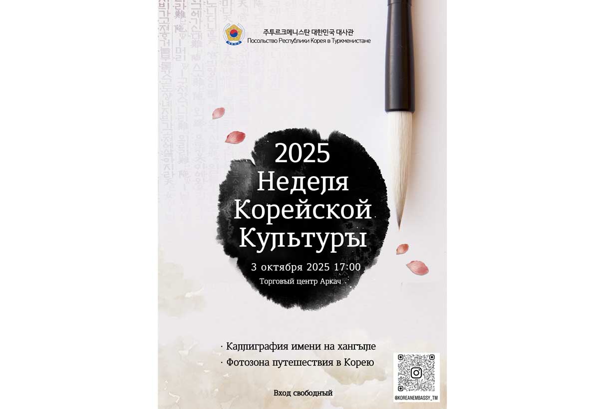 First day of the Korean culture to be in the Arkach shopping center at 17:00. There will be Korean hangyl calligraphy, and photo zones travel to the Korea. In the second day of the event will be the concert of the Korean artists. In the concert tenor Kwon Hwapyon and messo-soprano Kwon Miji will perform. The concert will start at 19:00 in the Magtymguly musical-drama theatre of Turkmenistan.
