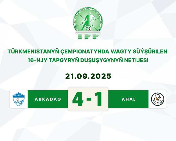 On September 21, the main match of the 16th round of the Premier League took place at the Nusay Stadium in Ashgabat. Specifically, the football clubs Arkadag, which confidently holds the top spot in the standings, faced Ahal, one of its main rivals.