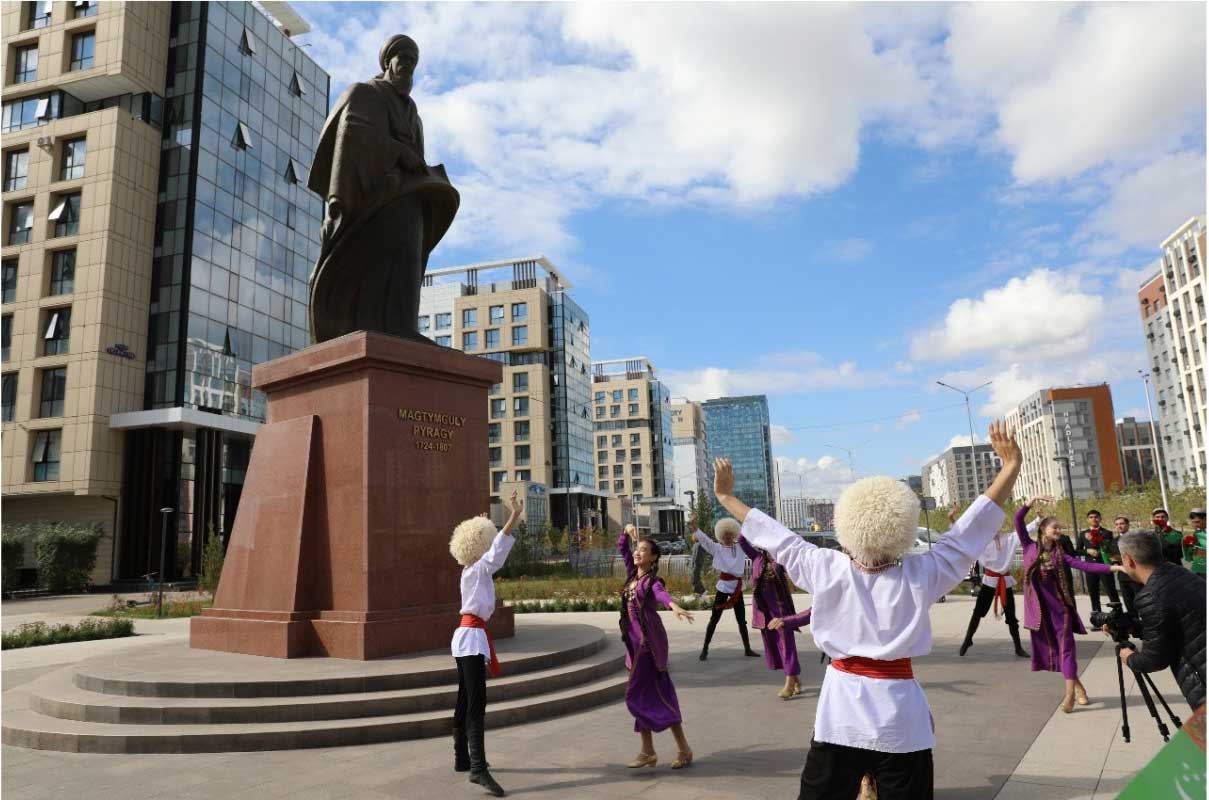 25-nji sentýabrda Gazagystan Respublikasynyň paýtagtynda, beýik türkmen şahyry we akyldary Magtymguly Pyragynyň ýadygärliginiň öňünde Türkmenistanyň Garaşsyzlygynyň 34 ýyllygyna bagyşlanan dabaraly medeni çäre geçirildi.