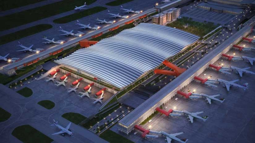 The terminal, which spans more than 240,000 square metres, will have three runways and is being developed in three phases.