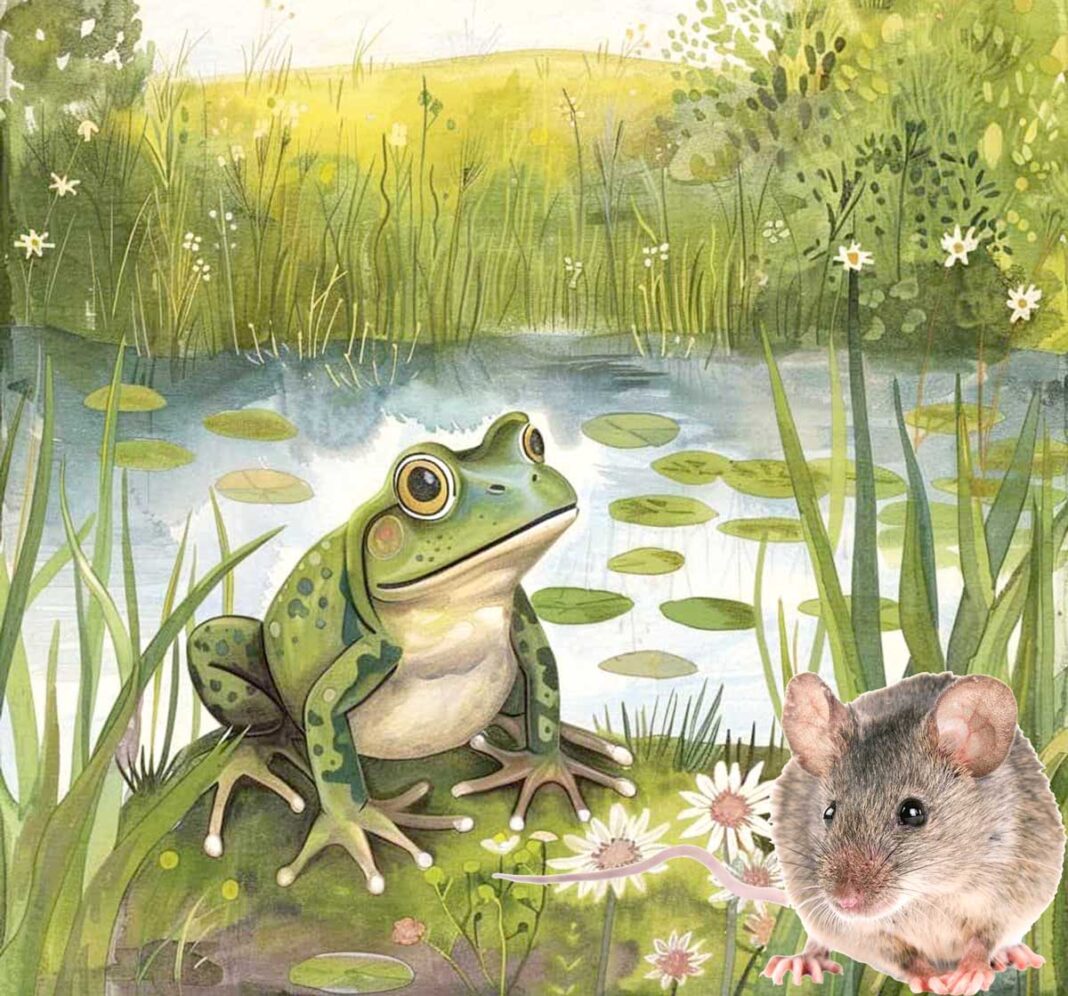 Bir ýola gurbaganyň öz ýaşaýan kölüniň gyrasynda gezim edip ýören syçana gözi düşýär. Syçan hem gurbaga seredýär. Şeýlelikde, olar bir-birini gowy görüp, dost bolýarlar. Ýöne olaryň biri gury ýerde ýaşapdyr, beýlekisem suwda. Olar wagtlaryny köplenç bilelikde geçiripdirler: syçan gury ýerden gurbagany çagyrypdyr, gurbaga hem syçana tarap ýüzüp baryp, begenjine warryklapdyr. Emma bu dostlukdan syçanyň göwni suw içmändir. Ol hemişe gurbaga bilen bile bolmak, onuň näme bilen meşgul bolýandygyny bilmek isläpdir. Çünki syçan çagyran wagty gurbaga kölüň uzak ýerinde bolany üçin syçanyň sesini hem eşitmändir. Syçan gurbagany gözlemek üçin suwa girip, ýüzüp bilmändir. Şonuň üçin bir gezek şeýle teklip edipdir: